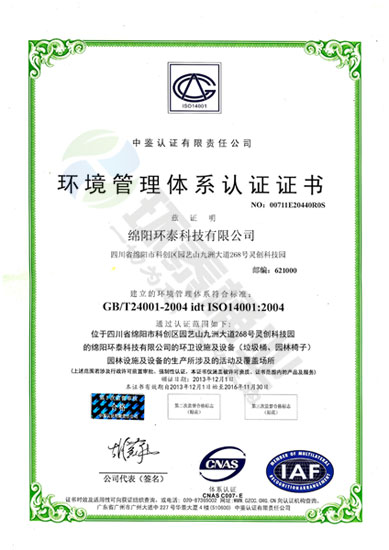 環(huán)境管理體系認(rèn)證證書